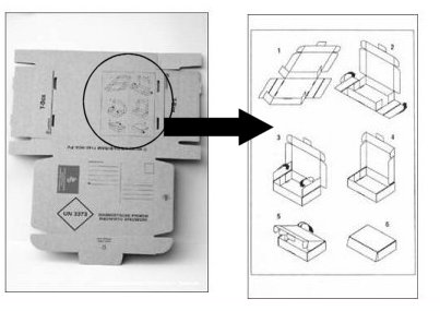 1. Der oder die Primärbehälter sind in die Sekundärverpackung (siehe Abb. 1 + Abb. 2) mit absorbierendem Material einzusetzen. (Falls es sich um zerbrechliche Primärbehälter handelt, müssen diese einzeln eingewickelt werden).