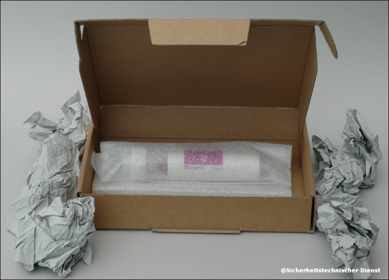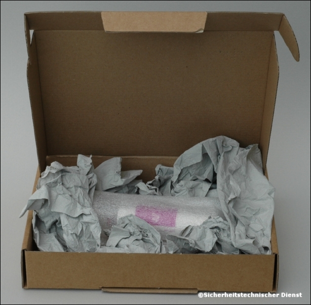 Der Styroporkarton kann als Außenverpackung eingesetzt werden. Der Deckel muss wie unten erläutert fixiert werden.